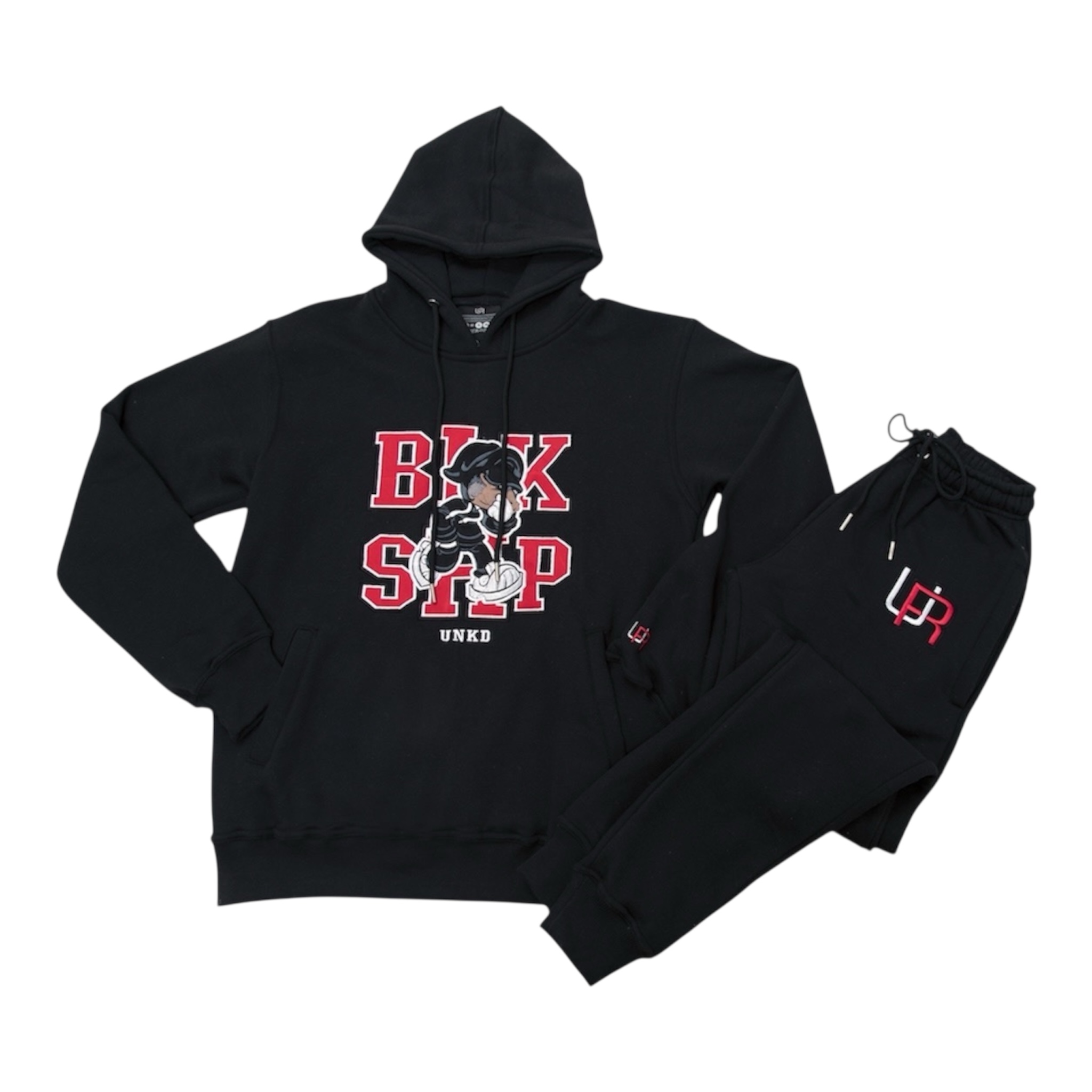 The BLK SHP Rebel Red Edition is a fearless tribute to the black sheep, the ones who lead from the edges and challenge the system with every step. With bold varsity-style lettering, our signature rebellious sheep front and center, and red-accented detailing throughout, this set demands attention without saying a word.